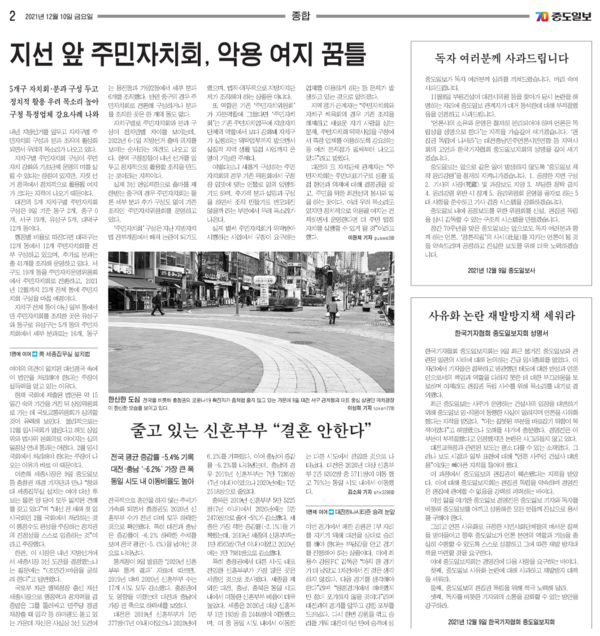 중도일보가 2021년 12월 9일, 2면 사고를 통해 최근 불거진 사유화 및 편집권 침해 논란에 공식 사과문을 게재했다.