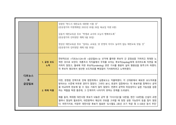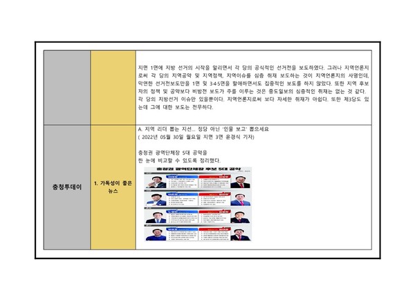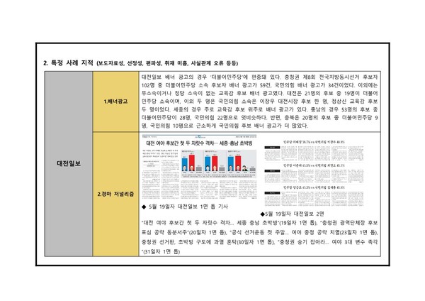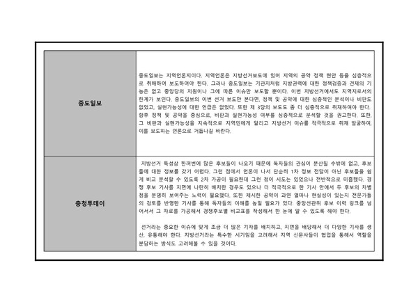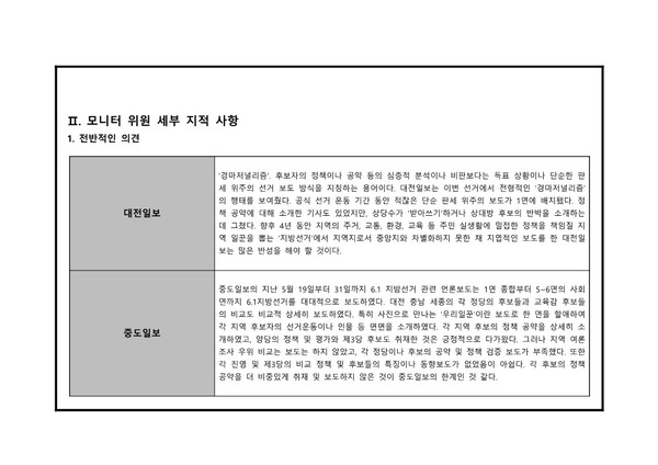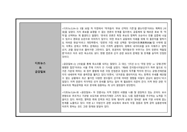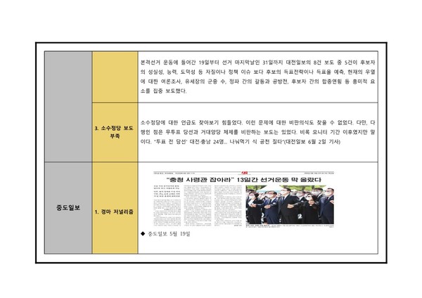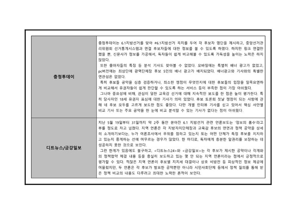 대전충남민언련 6·1지방선거보도 모니터 분석