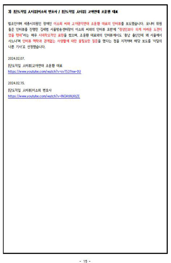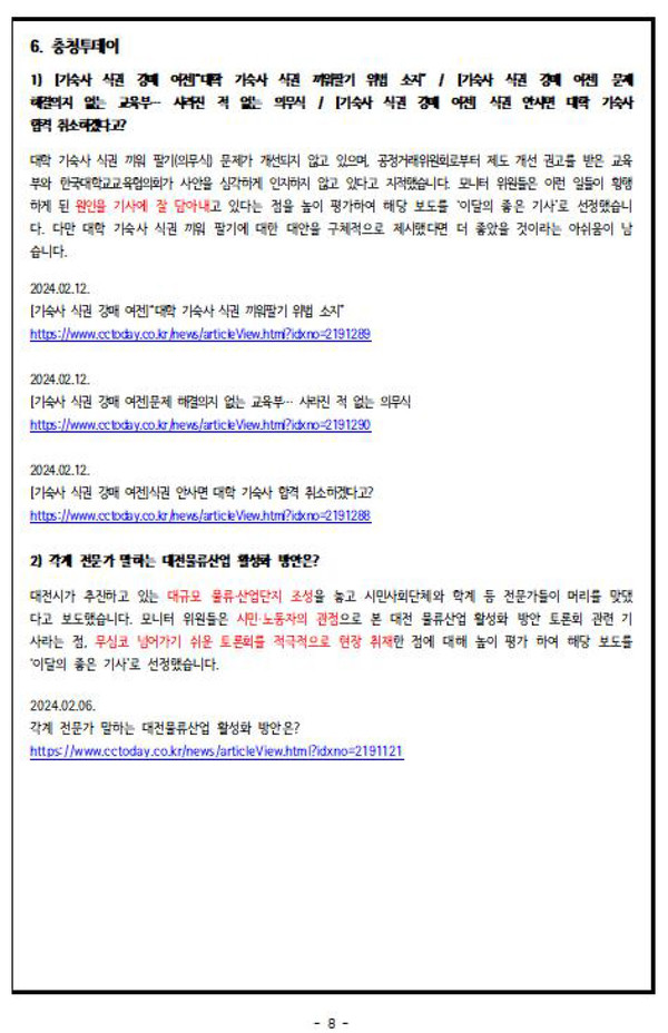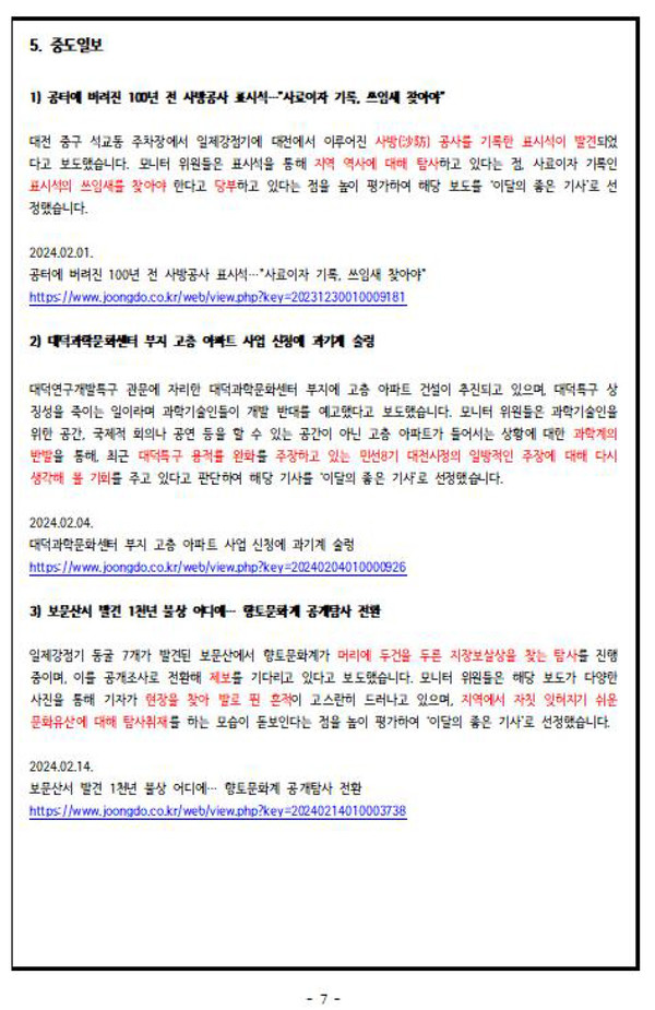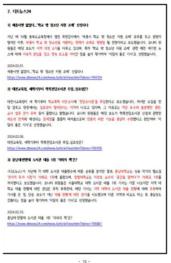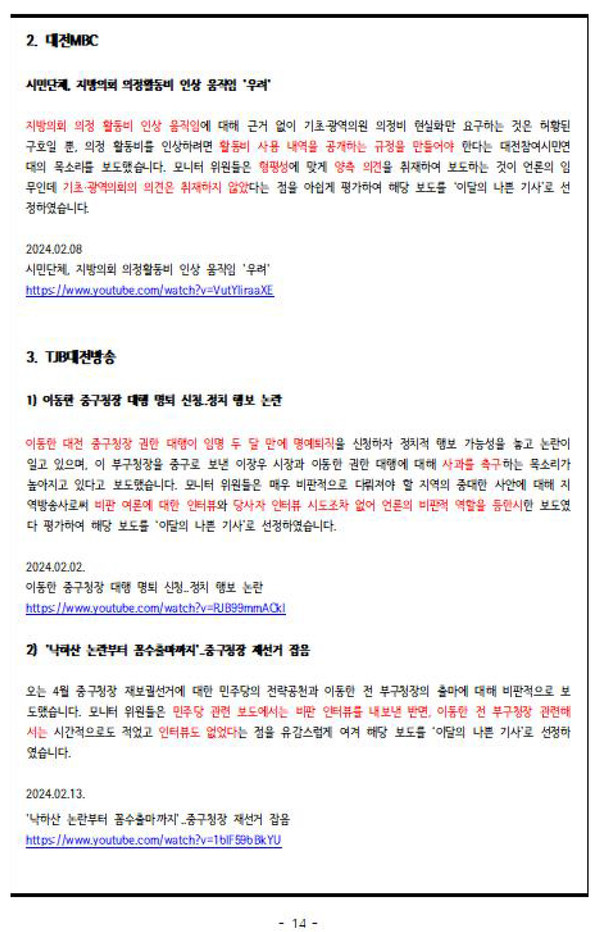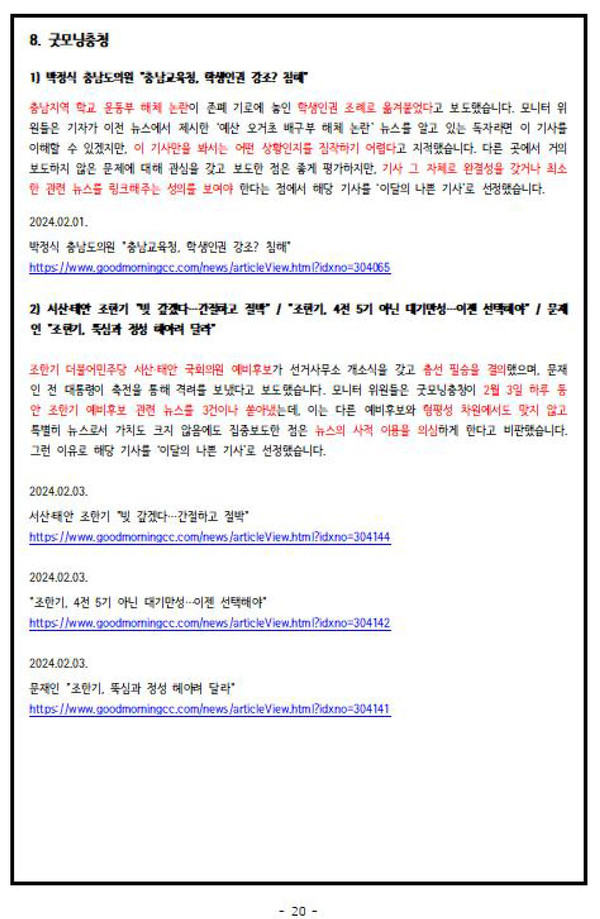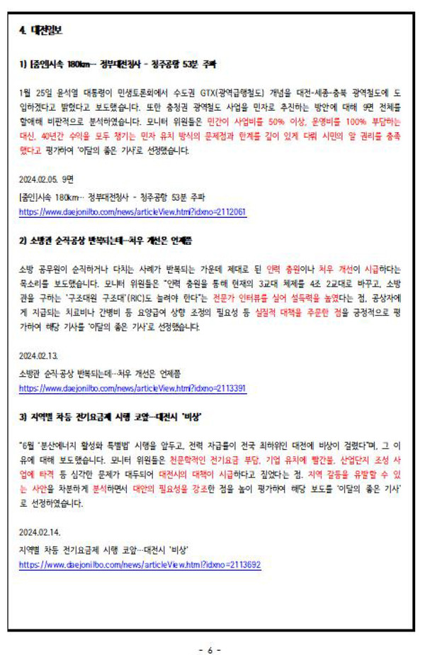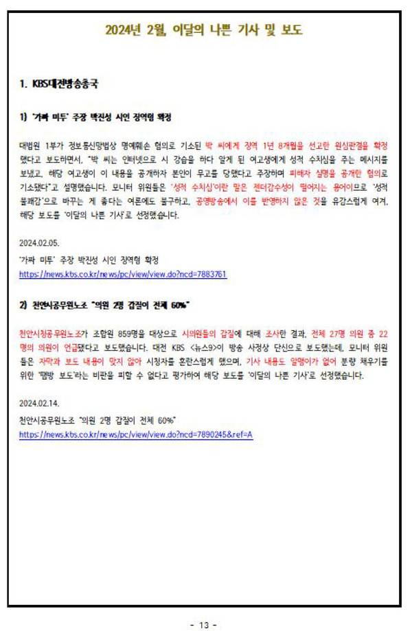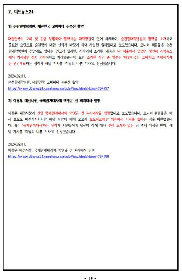2024년 2월, '이달의 좋은 기사', '이달의 나쁜 기사'