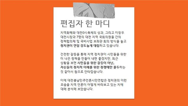 저작권자 © 대전충남민주언론시민연합 무단전재 및 재배포 금지