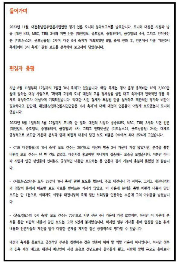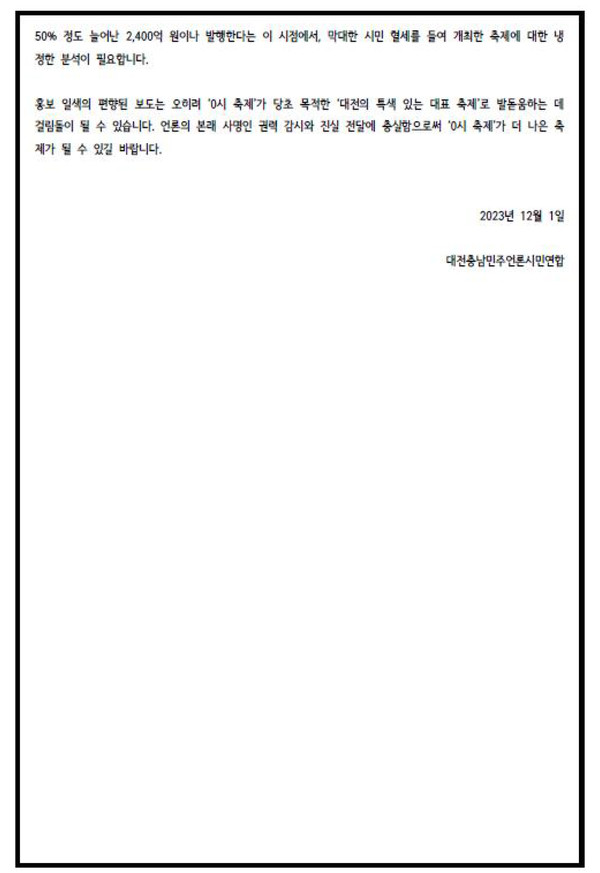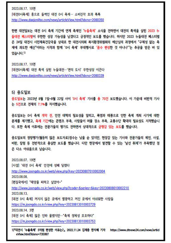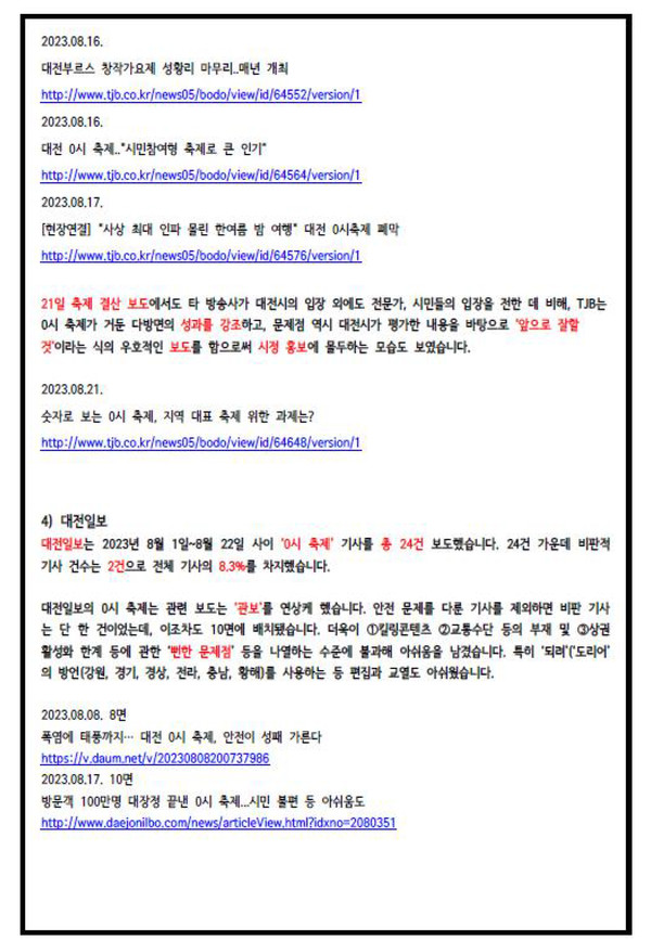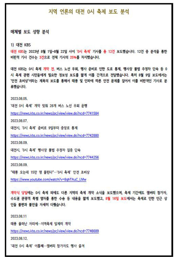 지역 언론의 대전 '0시 축제' 보도 분석