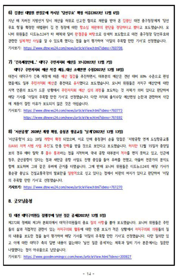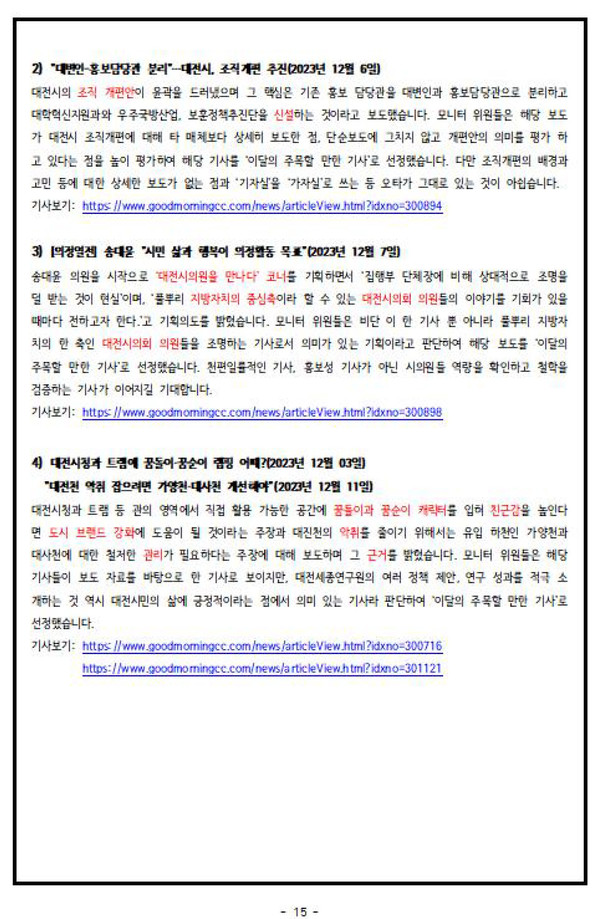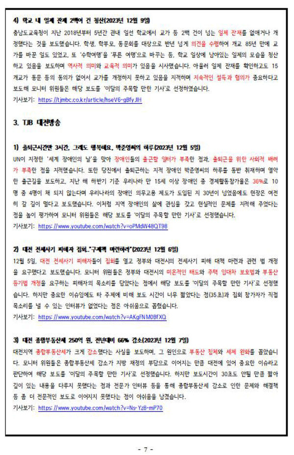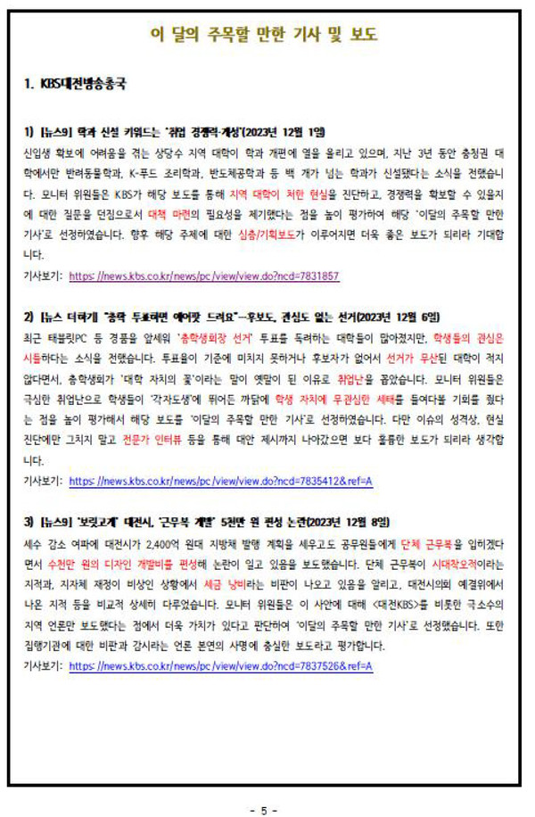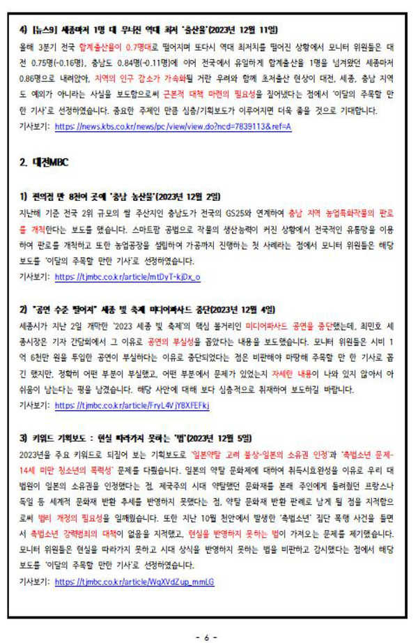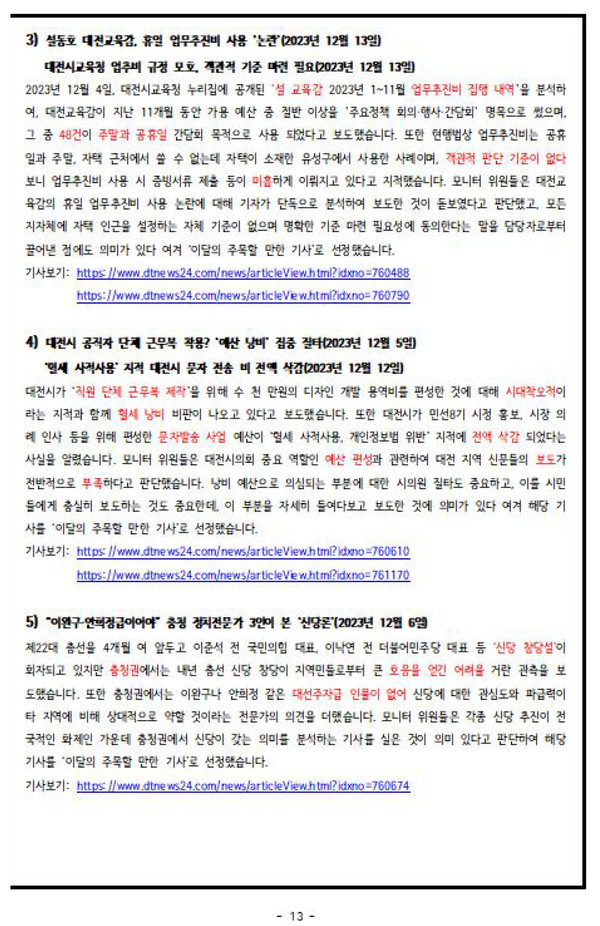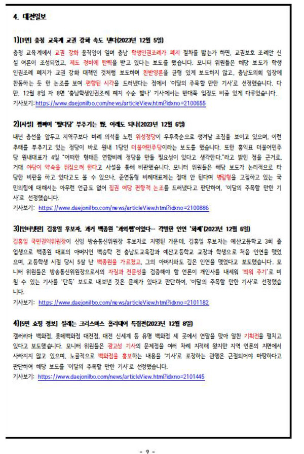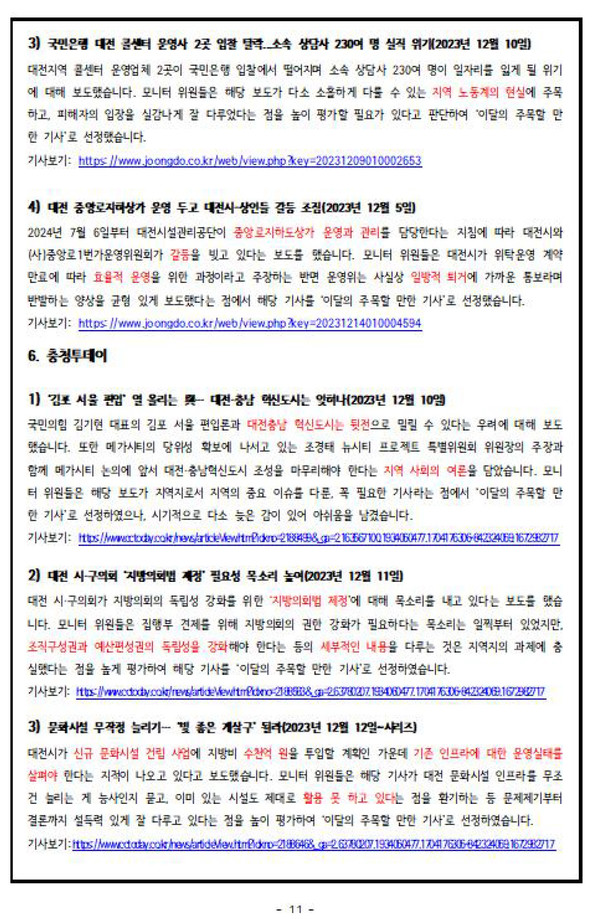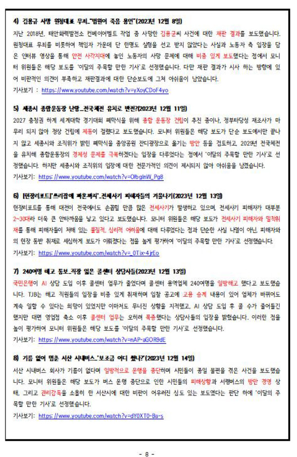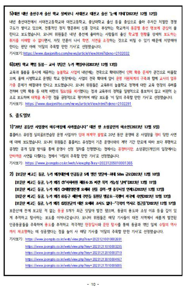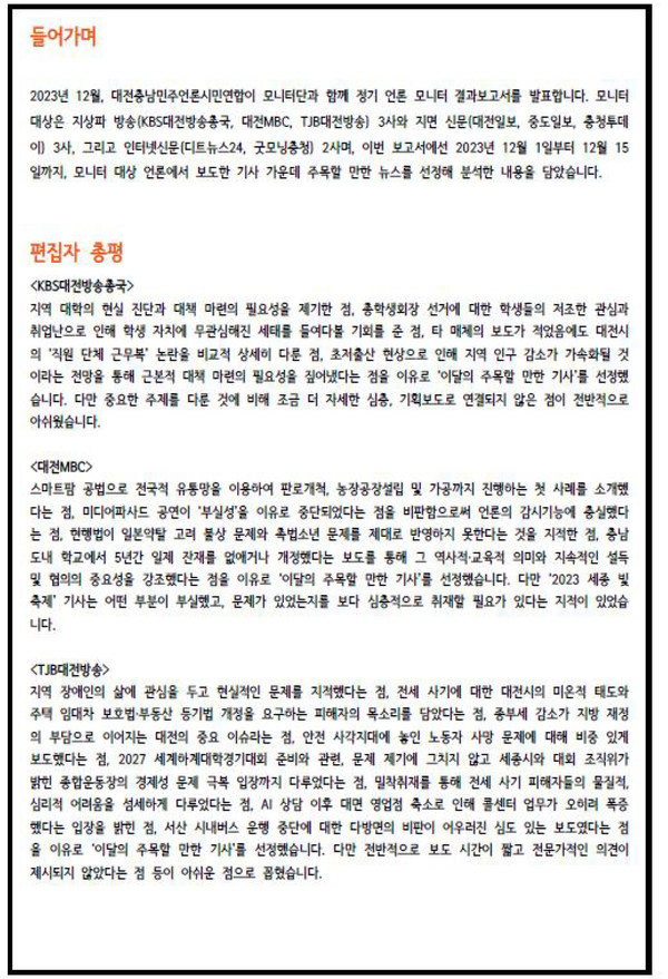 2023년 12월 ‘주목할 만한 기사 및 보도’