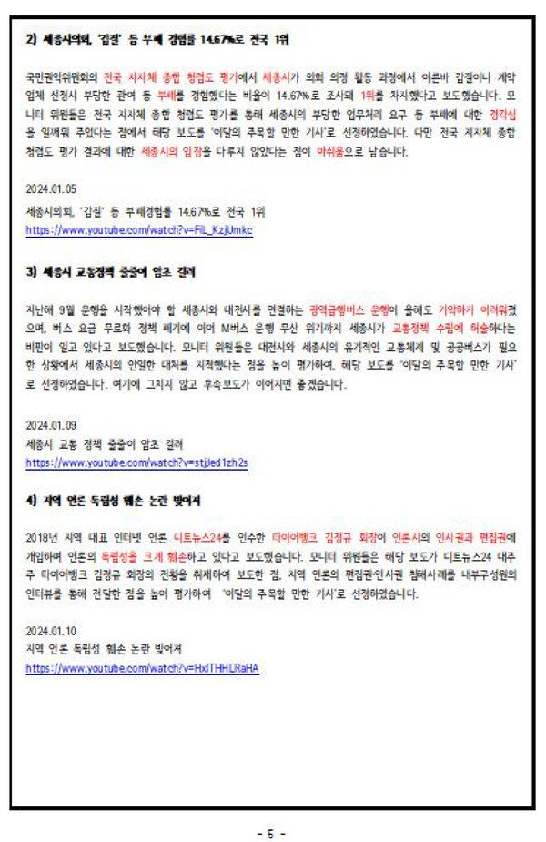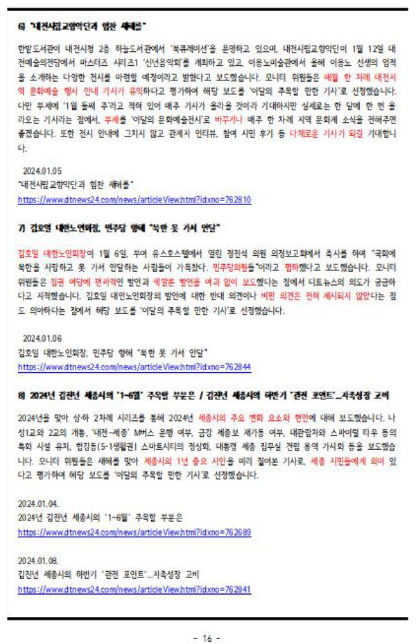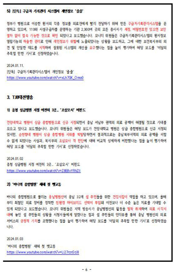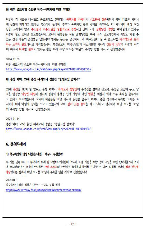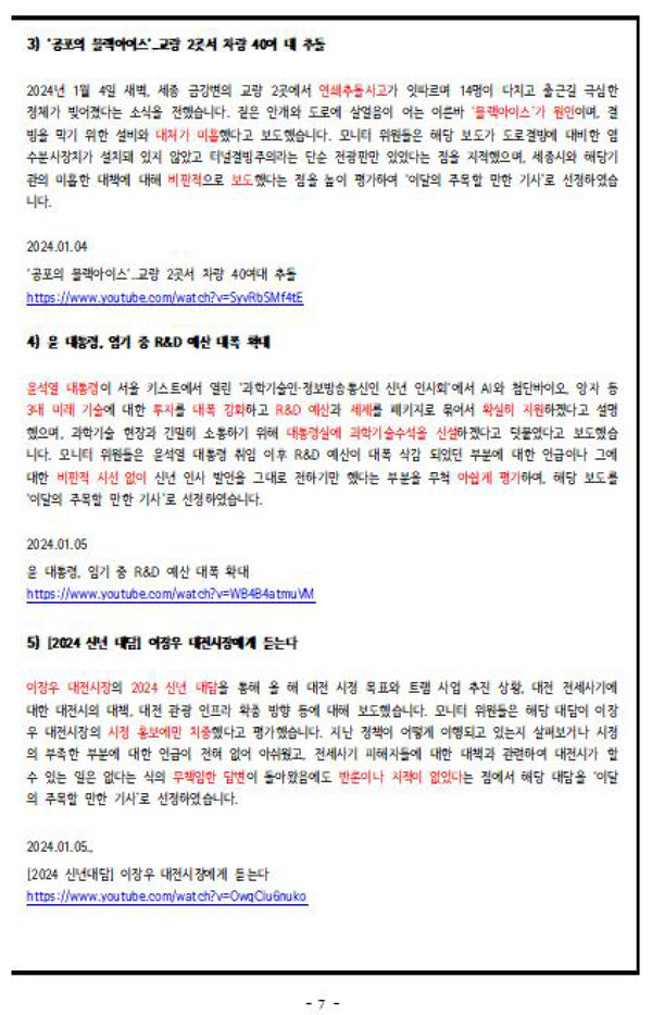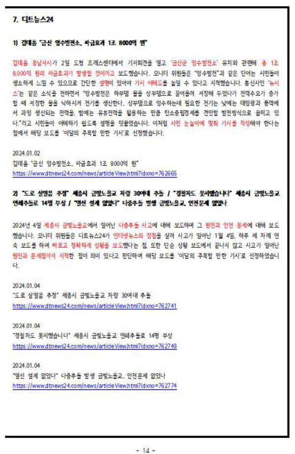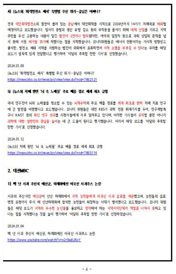 2024년 1월 ‘주목할 만한 기사 및 보도’