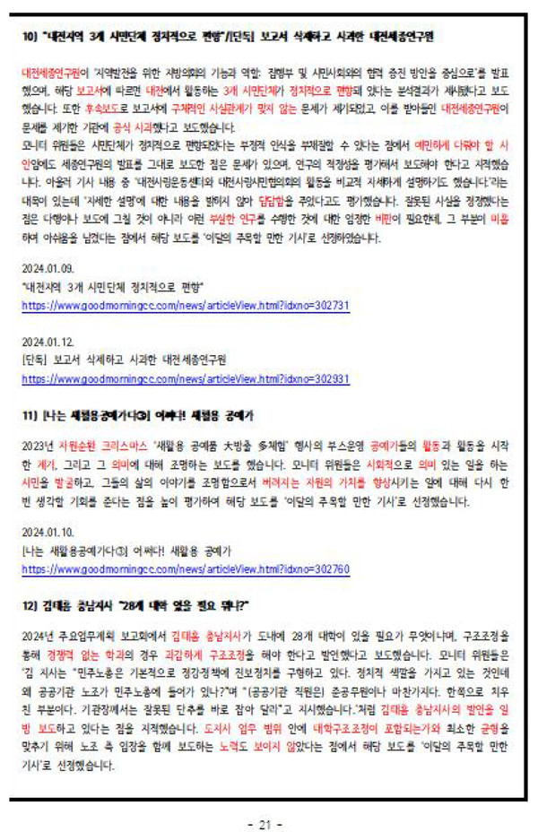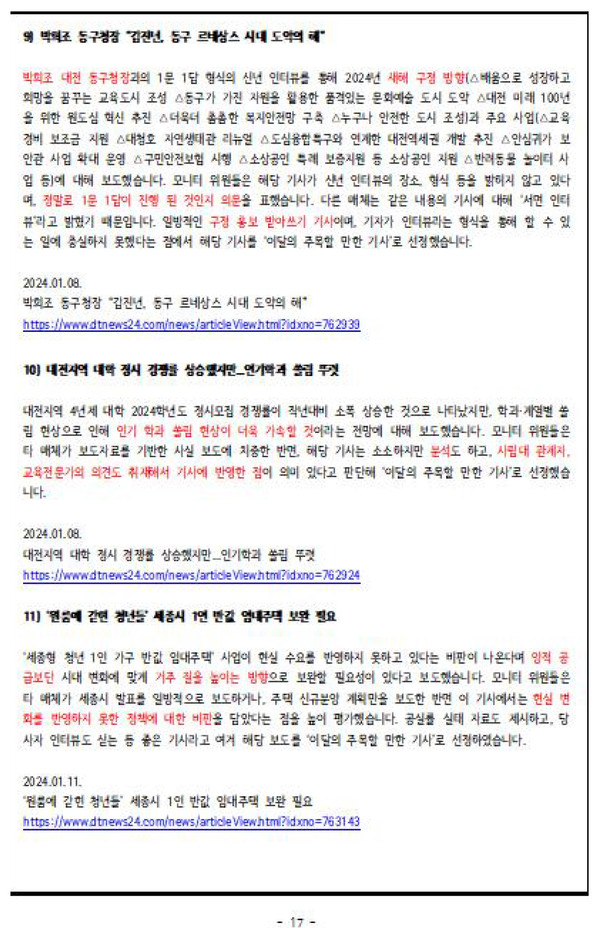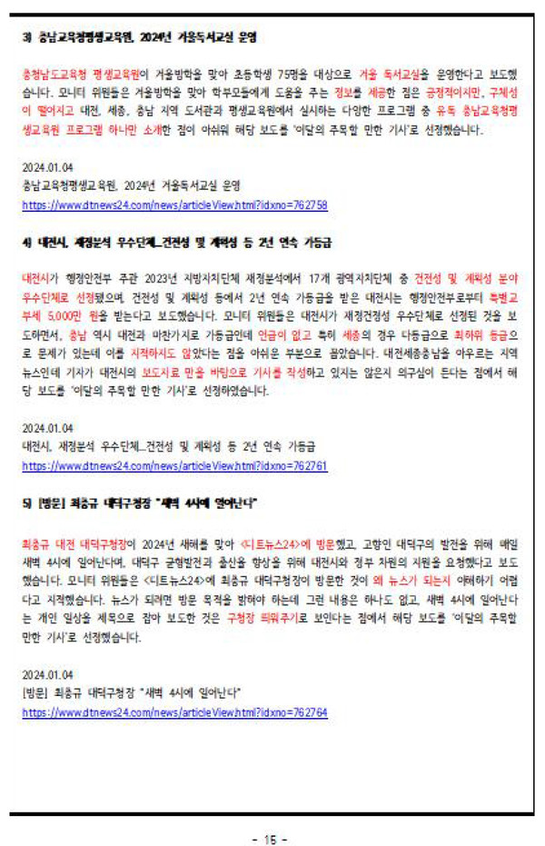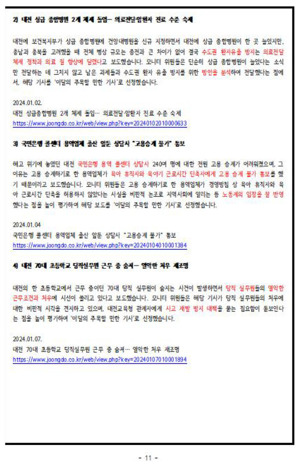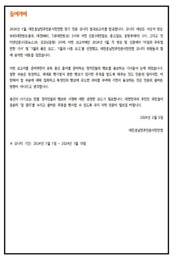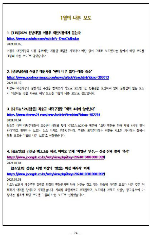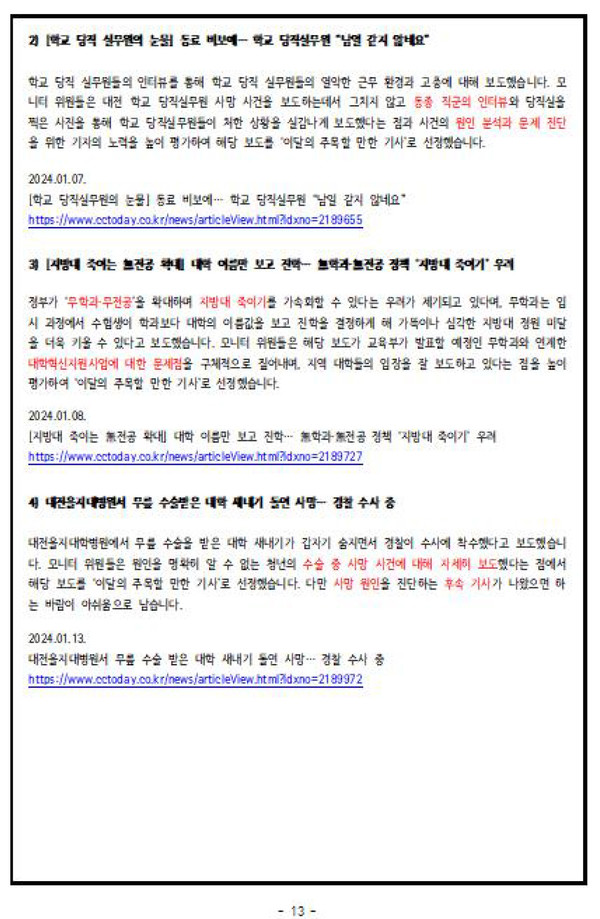 2024년 1월 ‘주목할 만한 기사 및 보도’