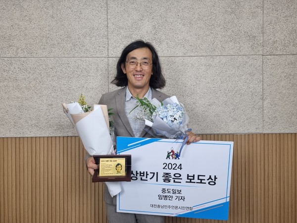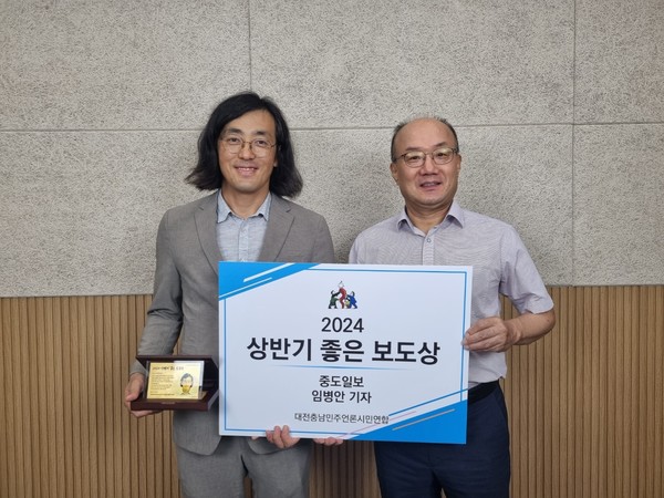 지역 언론을 모니터하는 시민단체인 대전충남민주언론시민연합(이하 민언련, 공동대표 박양진, 이문희)이 2024년 상반기 좋은 보도상 수상자를 발표했다. 민언련 모니터단이 지난 2024년 1월부터 6월까지 대전 지역 지상파 3사(KBS대전방송총국, 대전MBC, TJB대전방송)와 지면신문 4사(대전일보, 충청투데이, 중도일보, 금강일보), 그리고 인터넷 신문 2곳(디트뉴스24, 굿모닝충청) 등을 모니터하면서 모두 5건의 후보를 추천했고, 민언련 운영위원회의 투표를 거쳐서 <중도일보> 임병안 기자가 수상자로 선정됐다. 민언련은 임병안 기자가 근현대사적 가치가 높지만, 한동안 방치됐던 대전 보문산과 동구 세천에서 발견된 방공호 성격의 일제강점기 인공동굴에 대한 기획 기사를 꾸준히 작성해서 독자들에게 알리는 데 큰 역할을 했기에 2024년 상반기 좋은 보도상 수상자로 선정했고, 7월 8일 대전충남민주언론시민연합 사무실에서 시상식이 열렸다.