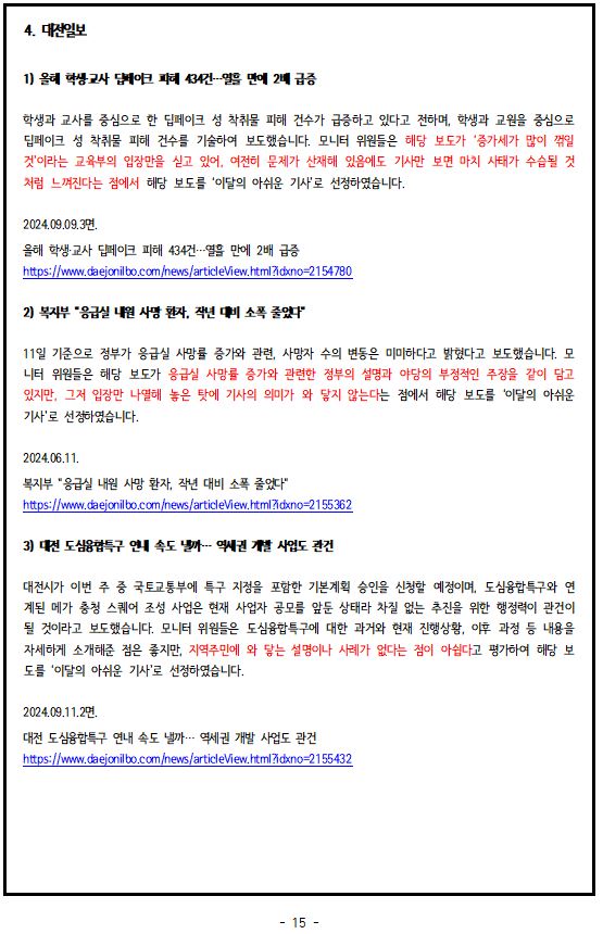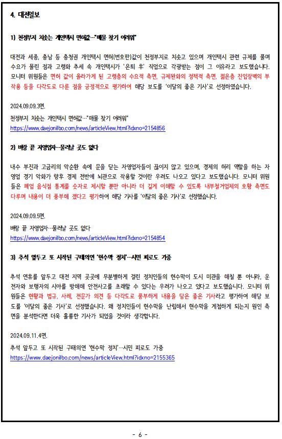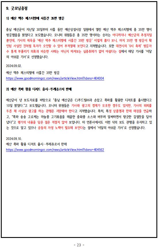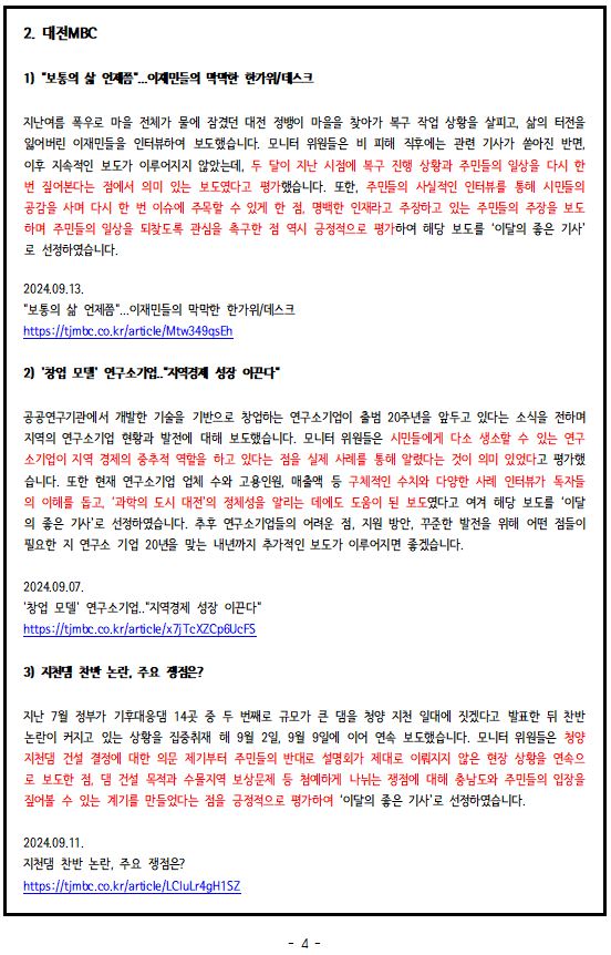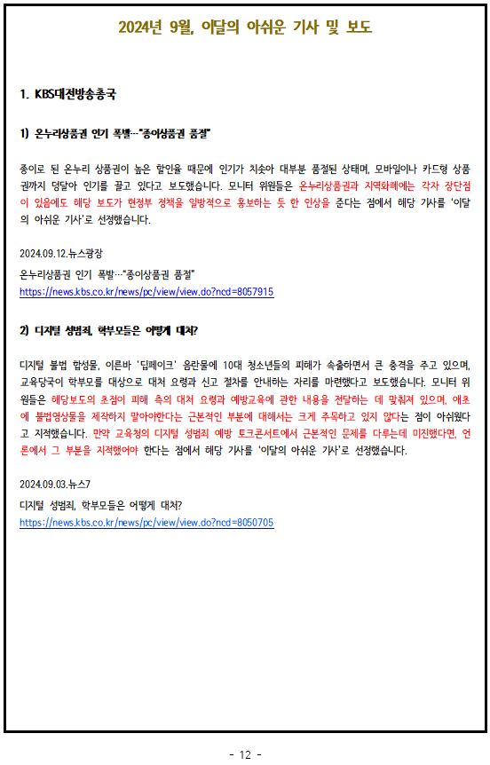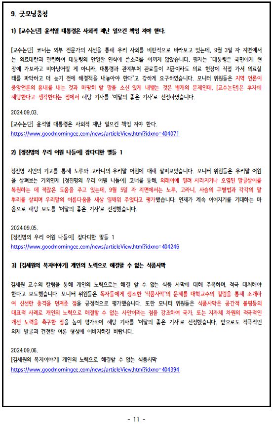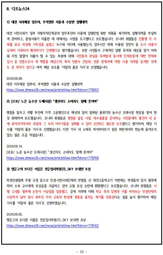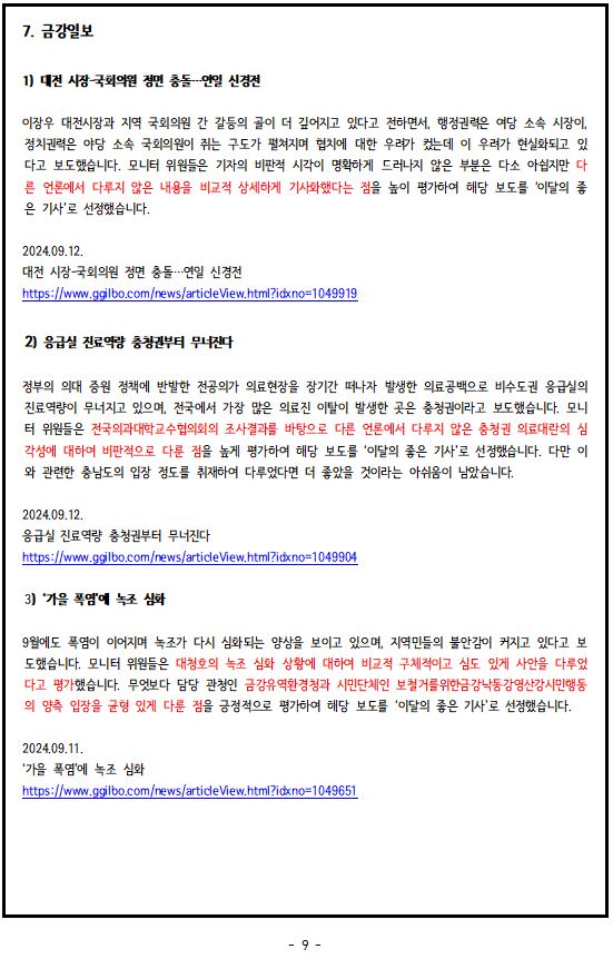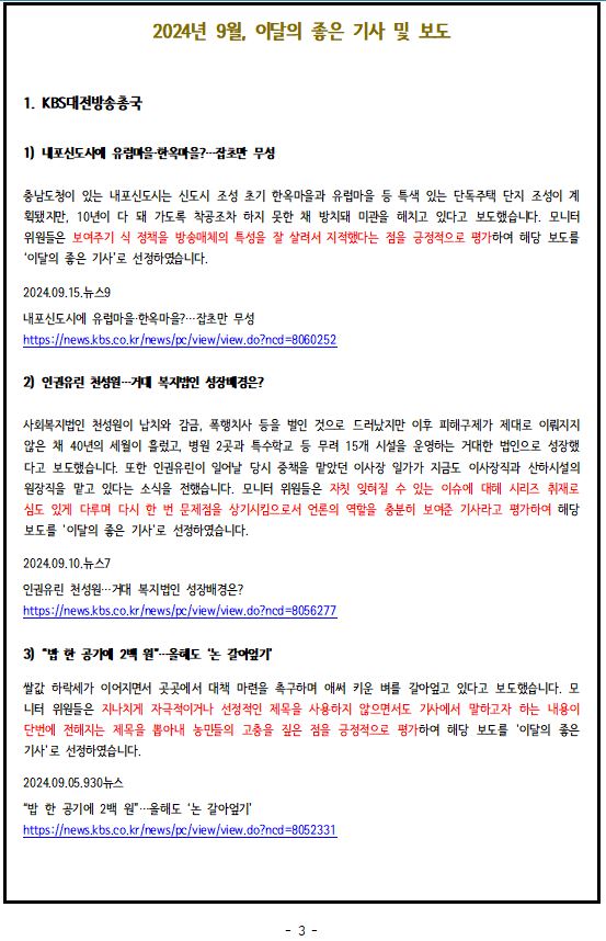2024년 9월, '이달의 좋은 기사', '이달의 아쉬운 기사'