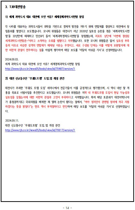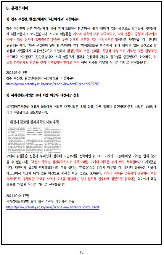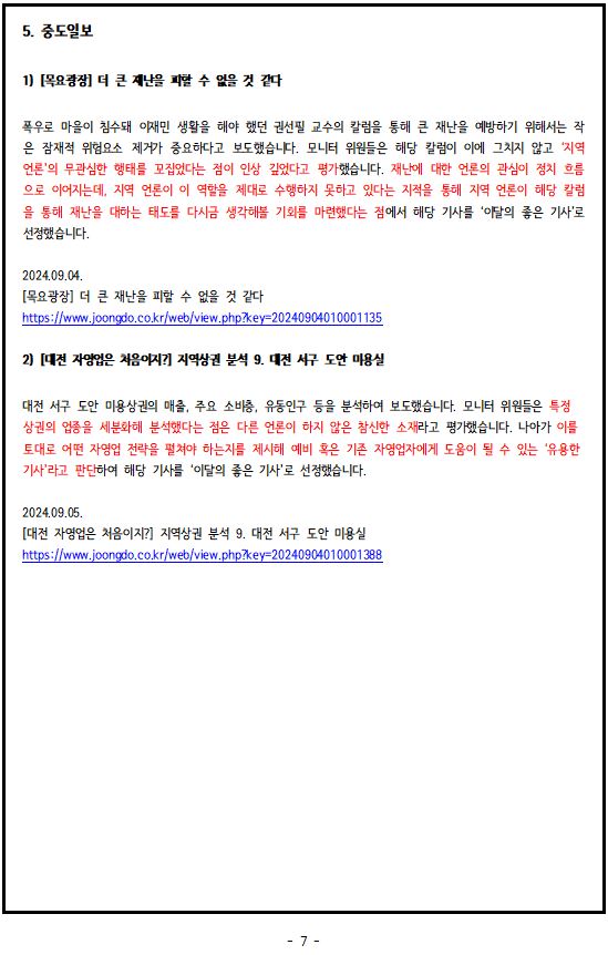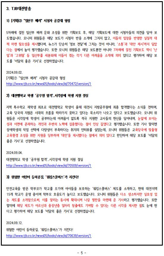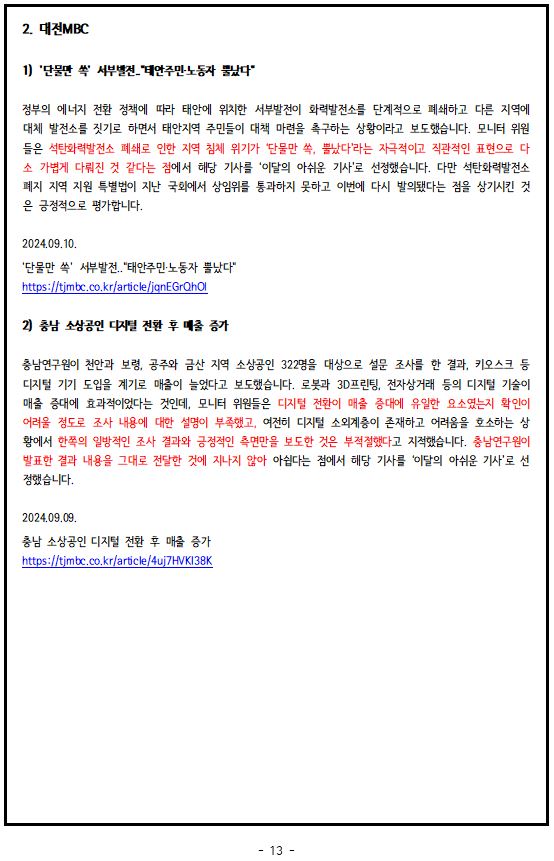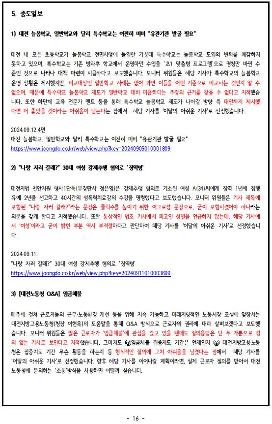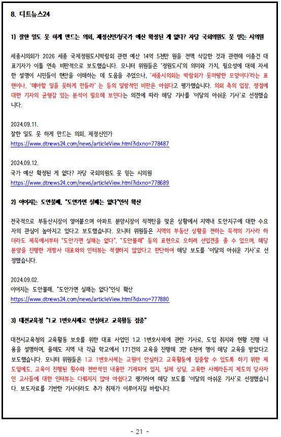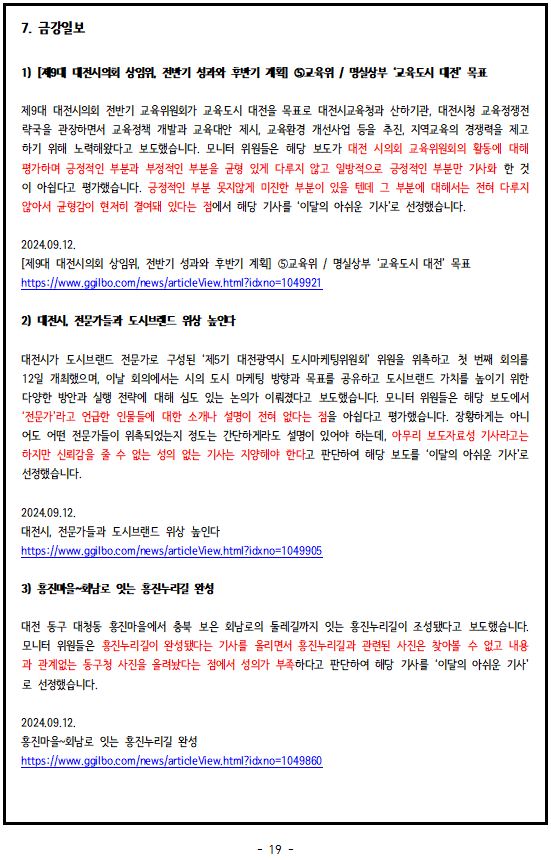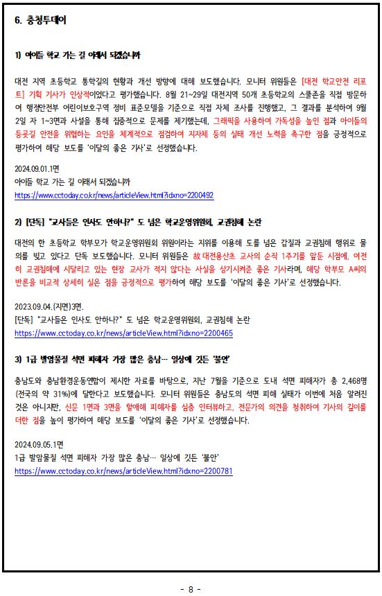 2024년 9월, '이달의 좋은 기사', '이달의 아쉬운 기사'
