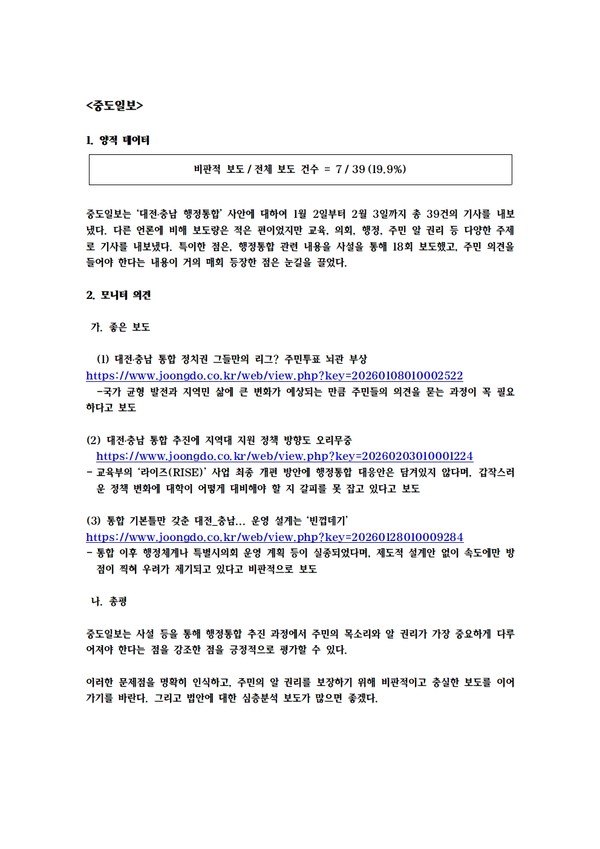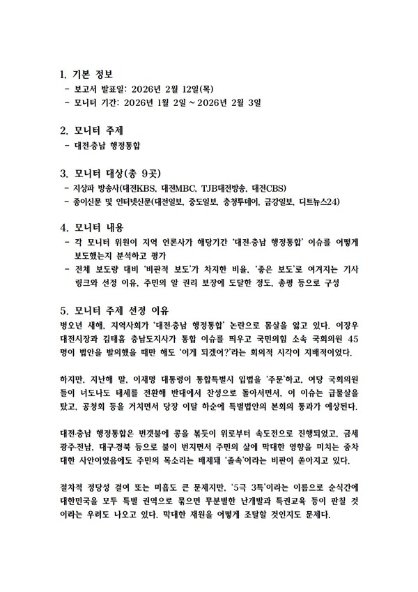 2026년 2월 대전충남민주언론시민연합 정기 모니터 보고서